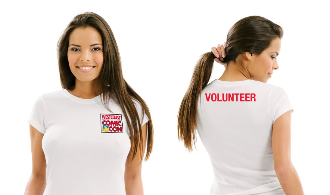 2) One free printed Westcoast Comic Con T-shirt (to be worn on the day of the show by all volunteers).*